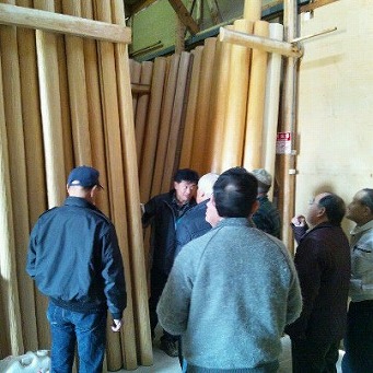 弊社も木材ブースの中で出展させていただき、吉野産の磨き丸太から各種変木、珍しいテーブル用盤まで展示しました。
