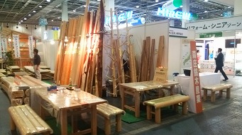 京都北山丸太をはじめ各県産材PRコーナー、非住宅の躯体展示、餅まき大会、木育コーナー等来場客が楽しめる展示会でした。