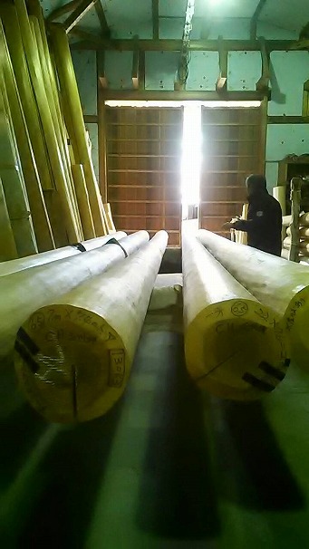お蔭様で吉野杉タイコ化粧梁・吉野桧タイコ化粧梁の人気がよく完売いたしました。杉太角杢柱やトチの銘木級耳付き板も売約出来ました。