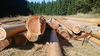 10月16日奈良県銘木協同組合原木市がありました。先日ヘリコプターを使って出材した原木1000石を市売りに掛けました。杉材は目合い、赤身の色、ハブシの有無などによりまったく値段が異なります。立木の時にはなかなかわからないことが多いので中にはがっかりするのもありますが、平均して見積もり通り売ることができました。市況厳しい中にも関わりませず多量のお買い上げ誠にありがとうございました!