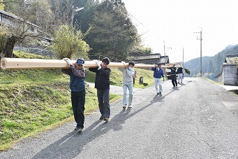 4月5日大安吉日。従弟のお家に長男が誕生し、鯉のぼりの竿を届けました。前もって経路等確認していたのでスムーズに搬入、クレーン車で立てました。山でかなり吟味して選んできましたが実際にまっすぐ立ってやれやれ。