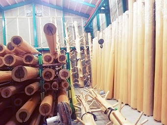 今年も長尺材で乾燥棟が満杯になりました。温度・湿度を管理しながら常温で風を回して乾かしていきます。これが当社自慢の超エコロジーな乾燥棟です!