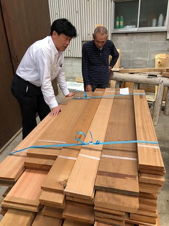 4月4月 東吉野村平野に所有する山林より搬出しました150年生吉野桧。近くの吉久製材所様にて大康工務店様N様邸の式台を製材しました。