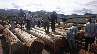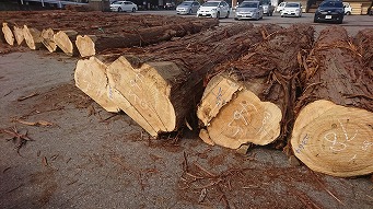 11月1日 奈良県銘木協同組合にて11月原木市がありました。前回の林材まつりに引き続き120年生吉野杉・桧を出荷いたしました。お蔭様で見積もりをはるかに超える競り売りとなりました。やっぱり杉は葉枯らしの色が肝心ですね!お買い上げありがとうございました!
