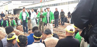 大勢の買い方と、優良材のまとまった原木と、出荷時期と、天候とがうまくかみ合って見積もりを大幅に超える競り売りとなりました。